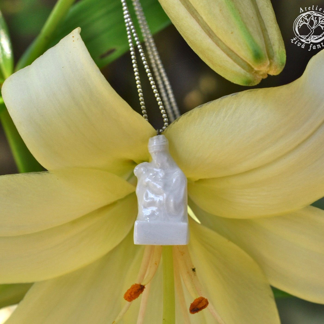 Dekorované zlatem na třetí výpal a doplněné kvalitním kuličkovým řetízkem z pozlacené chirurgické oceli.