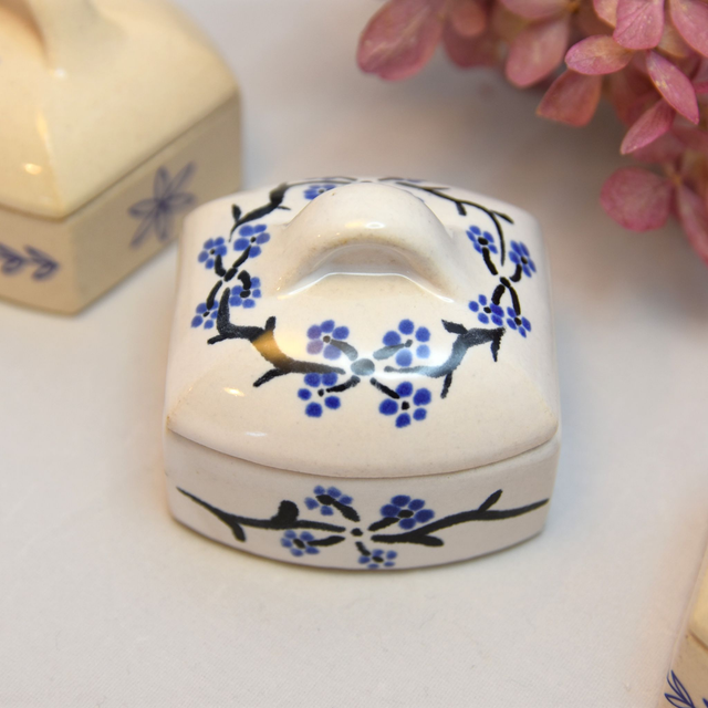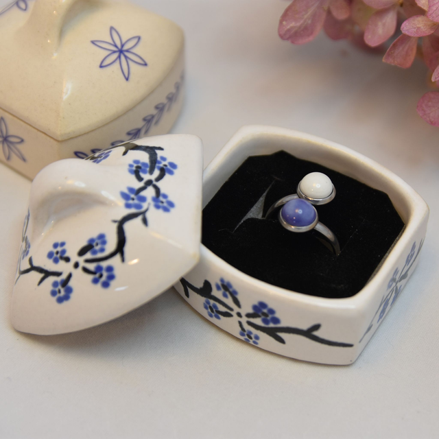 Kameninová malá krabička/dózička s víčkem na prstýnek nebo jiný šperk..Glazováno bílou glazurou + ručně malované do syrové glazury. Páleno na vysokou teplotu v keramické peci.