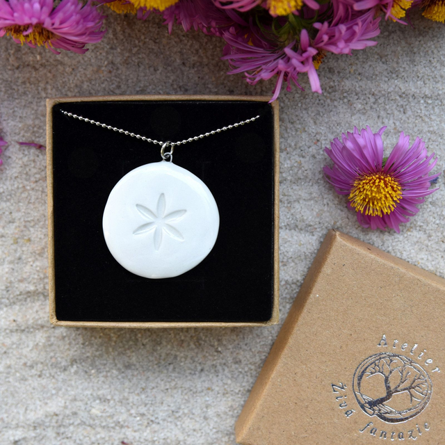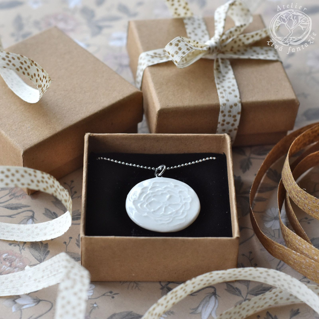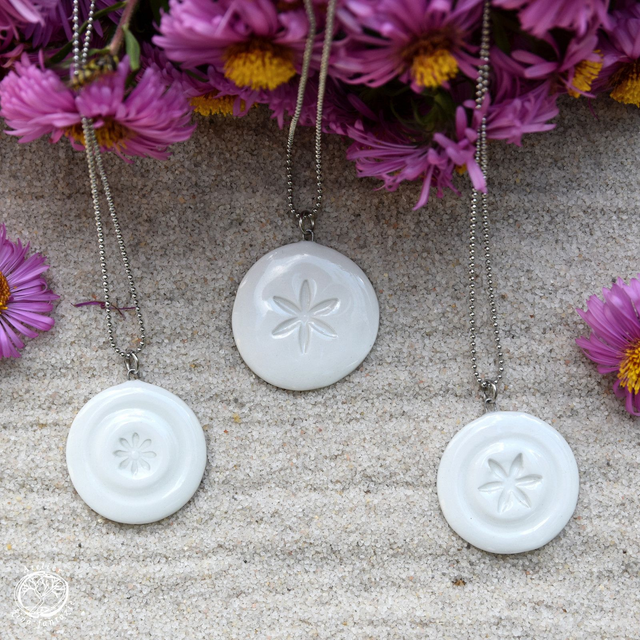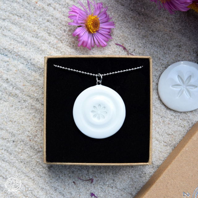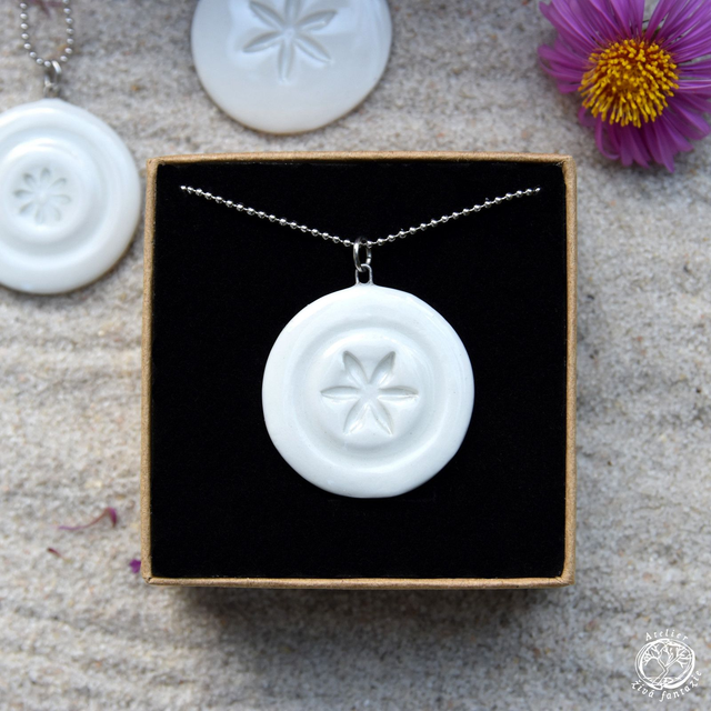 Porcelánový autorský náhrdelník s motivem Květu. Porcelán je glazovaný transparentní glazurou a pálený na vysokou teplotu.