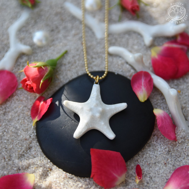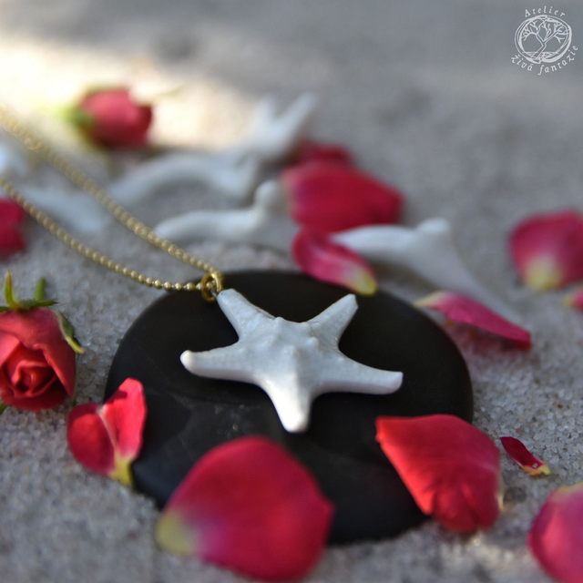 Porcelánový autorský náhrdelník, vznikl odlitím skutečné přírodniny z moře - mořské hvězdice do porcelánu. Uvnitř dutá, takže je lehounká. Bílá celoglazovaná.