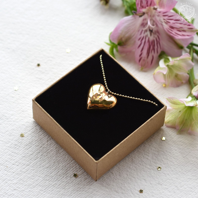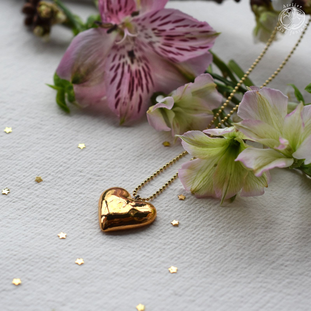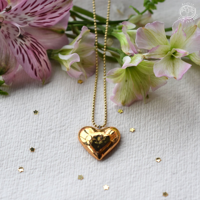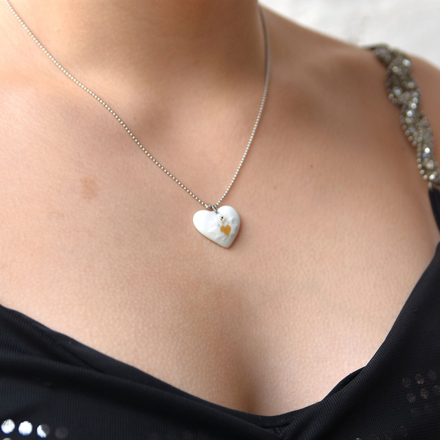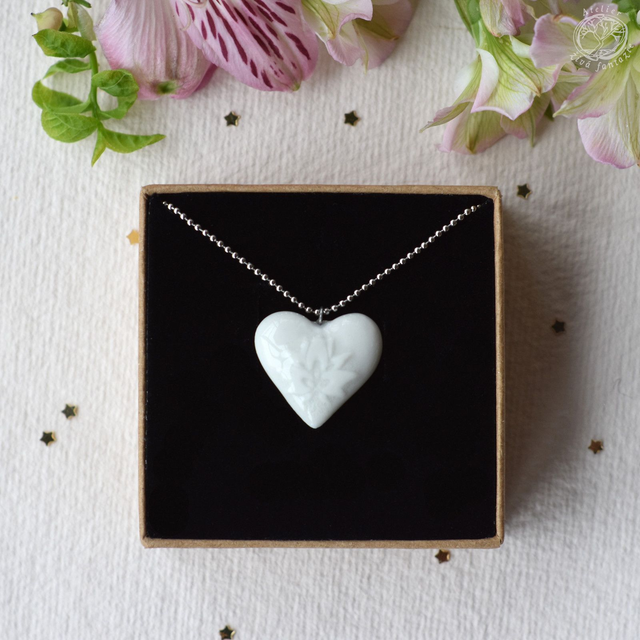 Porcelánový autorský náhrdelník Srdce s jemným reliéfem je glazované transparentní glazurou a pálené na vysokou teplotu v keramické peci. Uvnitř duté, takže je lehounké. Celoglazované, pozlacené nebo bílé dle varianty.