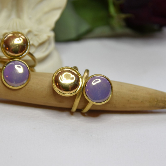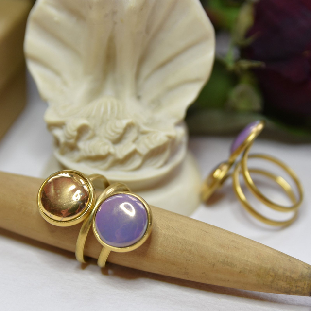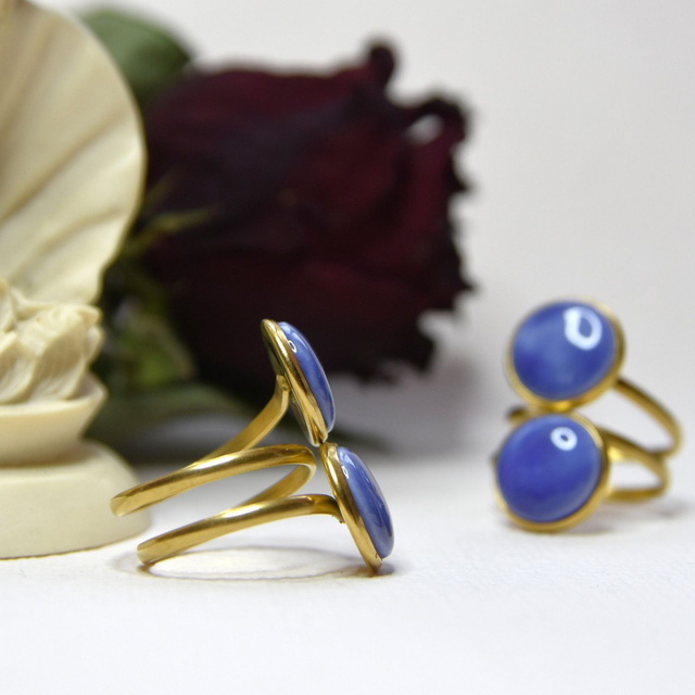 Autorský prsten z modře glazovaného nebo pozlaceného a růžovým listrem zdobeného porcelánu a chirurgické oceli (dle varianty).