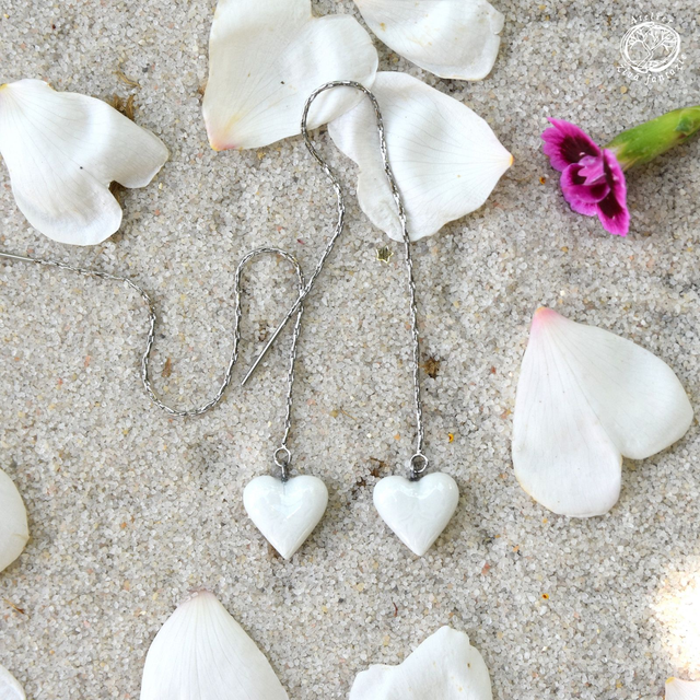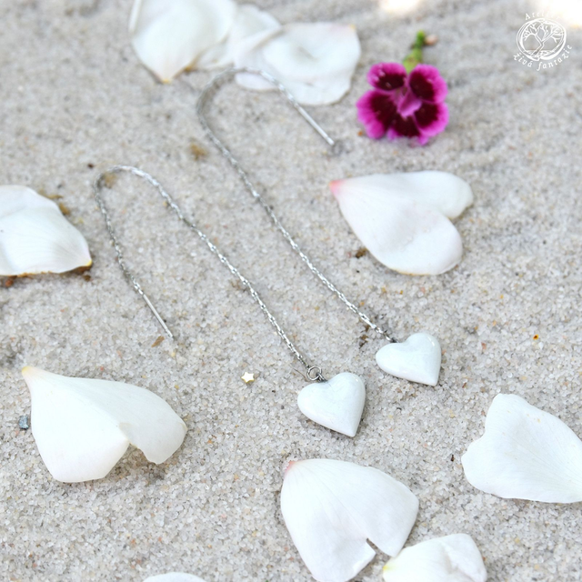 Porcelánové autorské dlouhé řetízkové náušnice se srdíčky z glazovaného porcelánu a chirurgické oceli. Celoglazované. Jsou duté, takže jsou lehké.